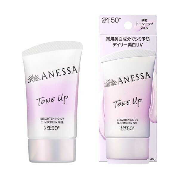 商品名 アネッサ ブライトニングUV ジェル NA 内容量 40g 商品説明 シミを防ぎながら、うるおいと透明感まで与える。 自然なトーンアップ仕上げで、素肌からくすみを明るく補正*。 メラニンの生成を抑え、シミ・そばかすを防ぐ薬用美白成分 mートラネキサム酸**配合。 ウォータープルーフ。せっけんで落とせる。 長時間保湿持続効果。化粧下地効果。耐こすれ。 *メーキャップ効果による **トラネキサ...